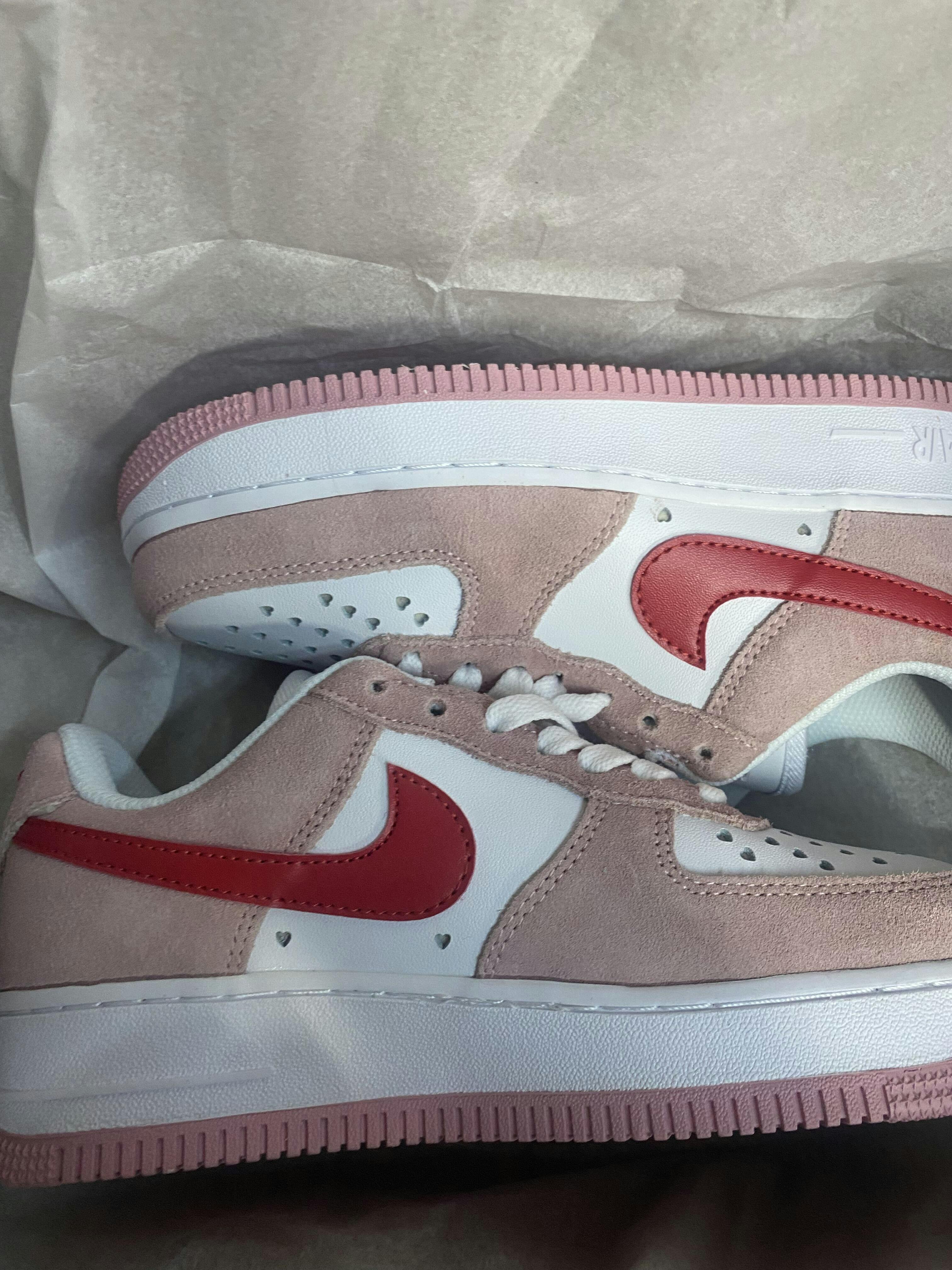Prepare to be smitten. In February 2021, Nike unveiled a special edition of their beloved low-top silhouette dedicated to the heartwarming holiday—Valentine's Day. The Air Force 1 "Valentine's Day Love Letter" sneakers boast soft panels in tulip pink and university red suede, adorned with a delicate "True Love Since '82" inscription along the mid-panel. Complete with the iconic Swoosh logo and embroidered "Air" logo, these low-top sneakers are a sight to behold.