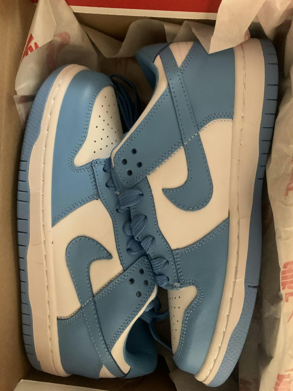 Timeless and unbeatable, the Dunk Low silhouette continues to impress after more than 35 years since its debut. Bold and defiant, it remains a sought-after style in both sports and culture. With a blue and white colorway, this Nike pair exudes a heavenly appeal, capturing the essence of an enduring classic. Embrace the iconic style of the Dunk Low and elevate your sneaker game to new heights.