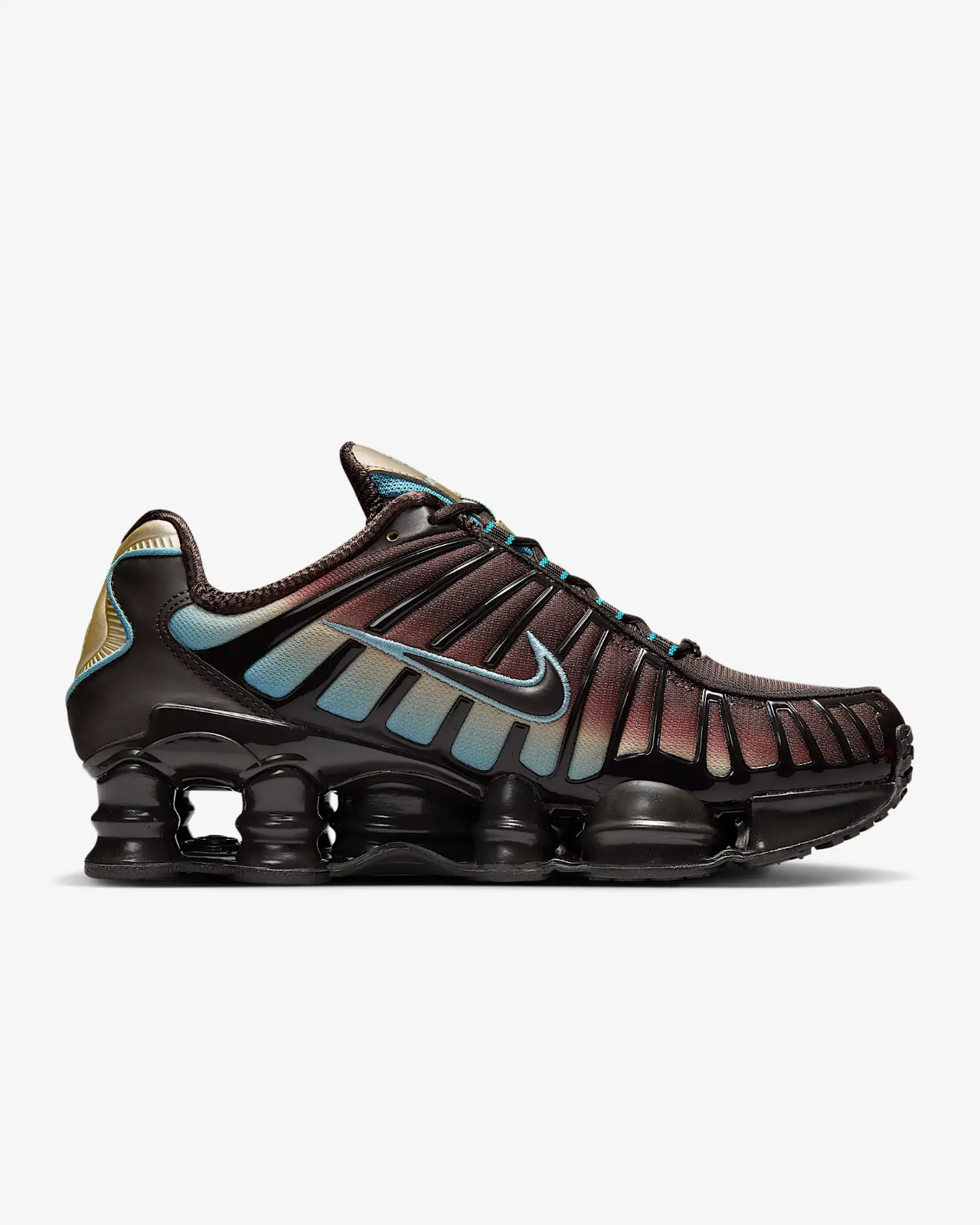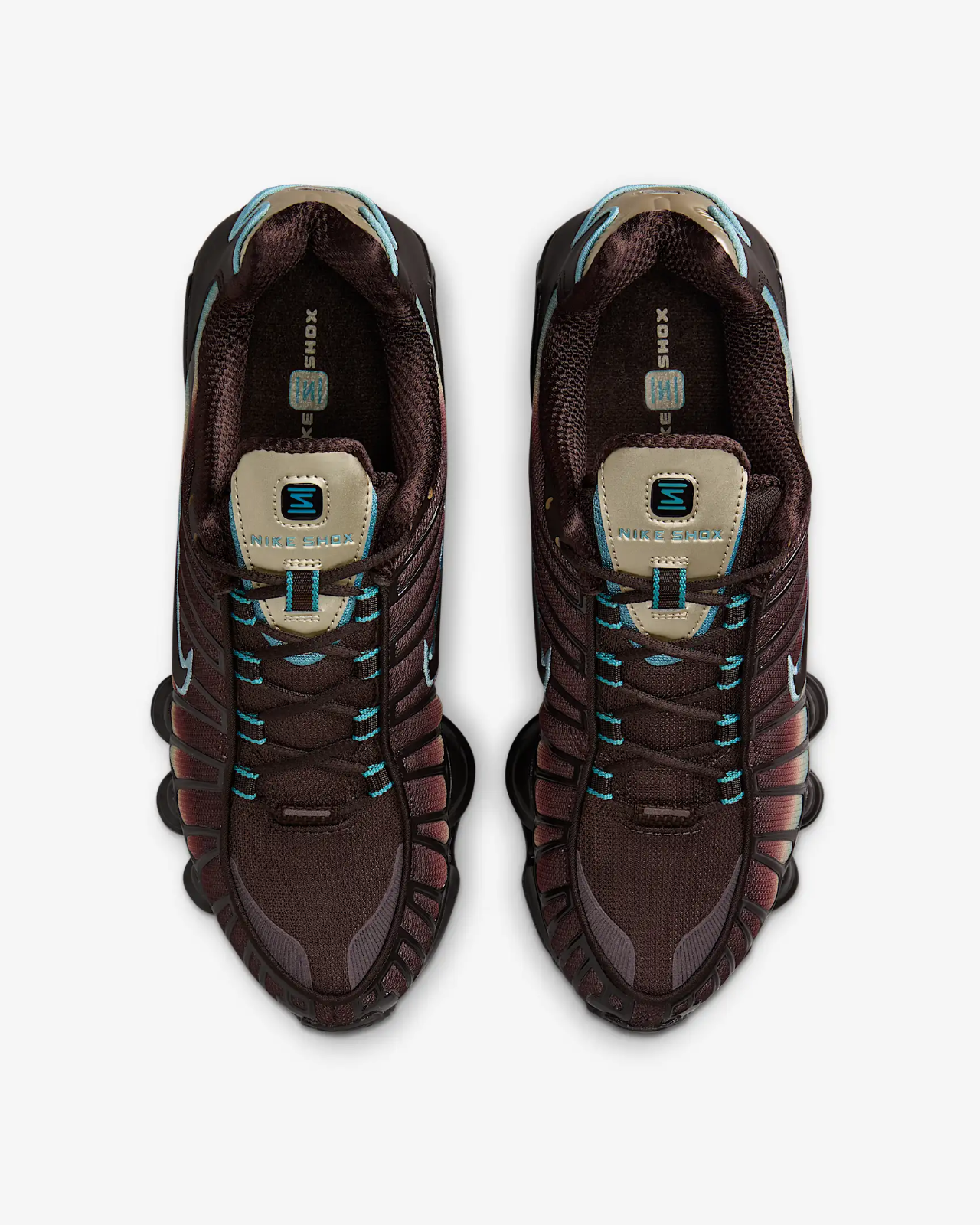 Step into sleek, earthy tones with the Nike Shox TL Women’s Sneakers in Velvet Brown and Desert. This elevated design pairs Nike’s iconic full-length Shox cushioning with a rich, neutral palette made to match any wardrobe.